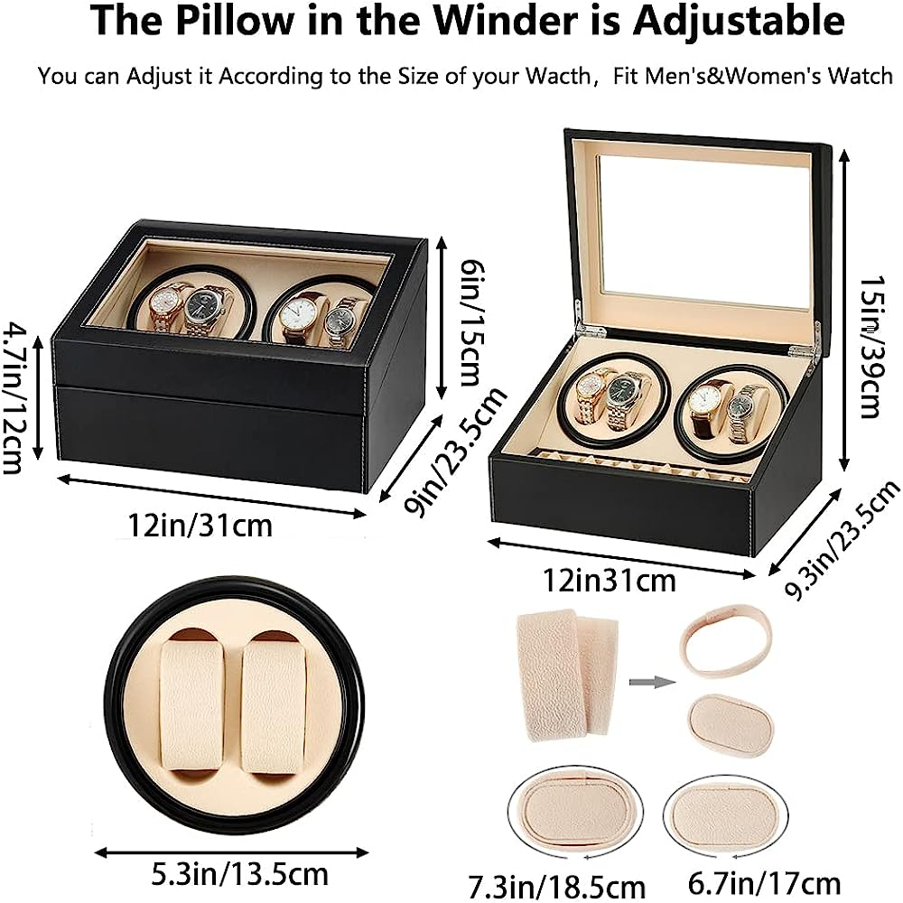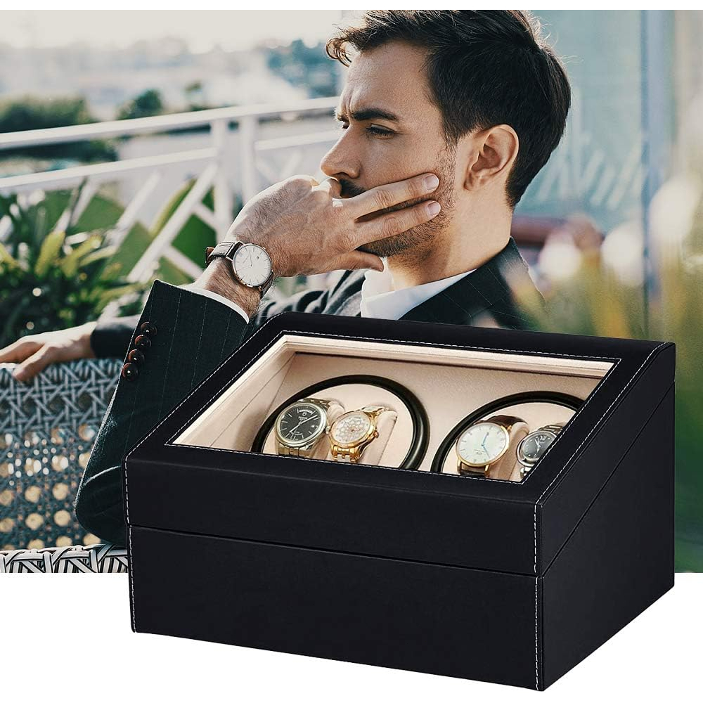 I like that I no longer have to set my automatic watches, and have additional space for my battery operated watches. The auto wined feature is very silent and seems to spins randomly throughout the day. It has 4 space for automatic watches and six adjustable slots for battery operated watches (which can be used for other accessories)