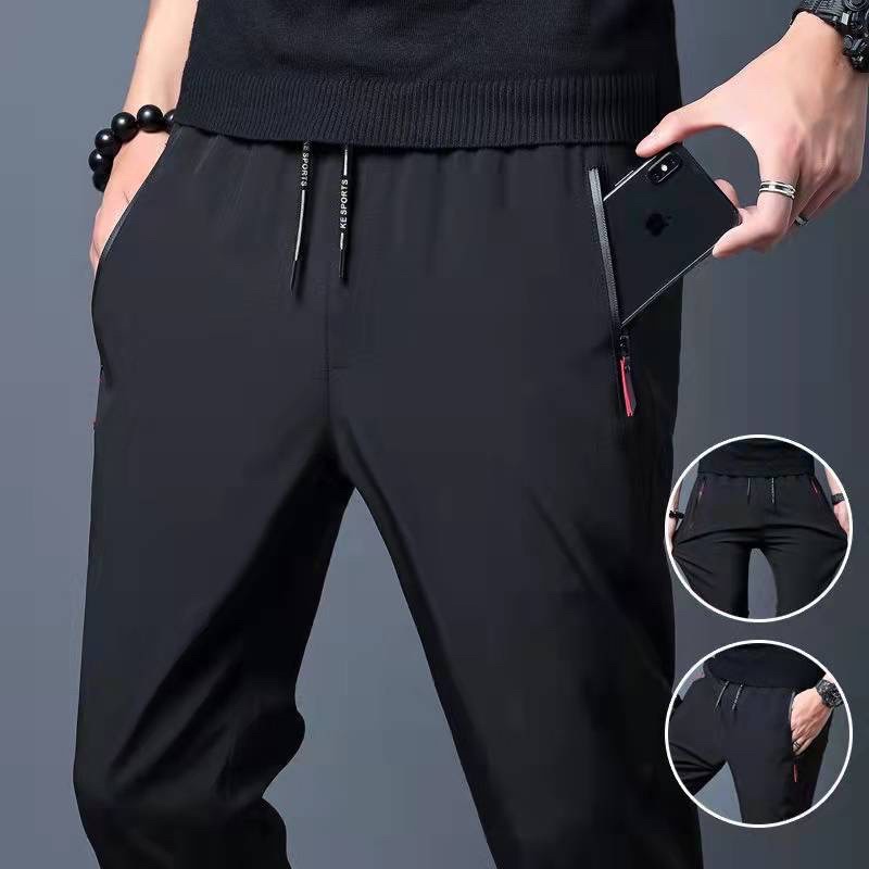 [Local Delivery] Korean Men's Slim Fit Pants Thin Ice Silk Breathable Casual Long Pant Fashion Trousers