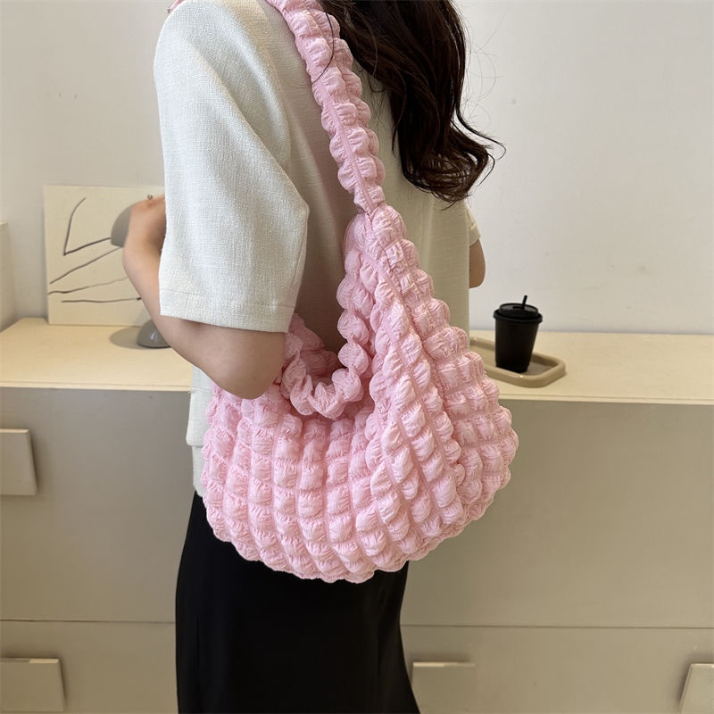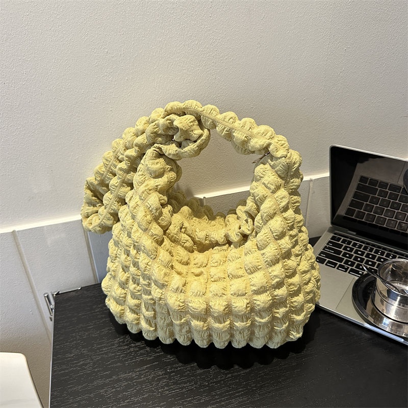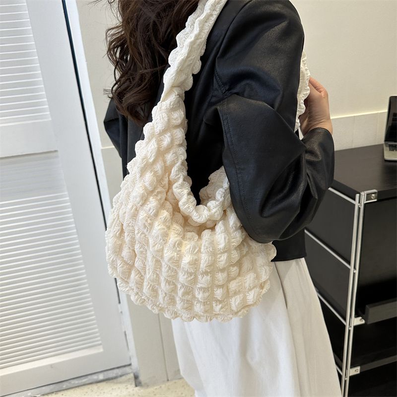 Pleated Cloud Underarm Bag 2023 New Style Solid Color Shoulder Bag Commuter Pleated Bag Shopping Bag Korean Girl Heart