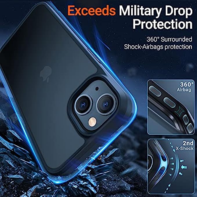 • RUGGED MILITARY-GRADE SHOCKPROOF: Equipped with exclusive 2nd gen X-SHOCK technology on all 4 corners, embedded with 360° shock-absorbing Airbags throughout the interior of bumpers, built with TPU bumper of 4-ply cushioning structure, our iPhone 13 phone case ensures up to 4X as many drops as a military standard. Plus, the back of this iPhone 13 protective case is made from polycarbonate which is the same as the material used in riot shields! Your beloved device will be safeguarded for so long.