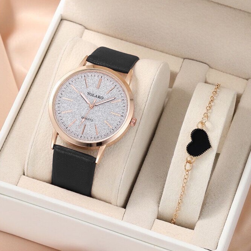 【Watch+Bracelet】Watch Bracelet Set Fashion Starry Sky Leather Strap Women Watches