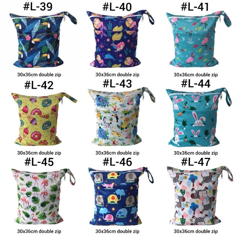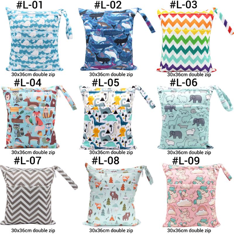 ?? Waterproof Wet Bag / Diaper Bag / Nappy Bag (30x36cm) (Double Zip)