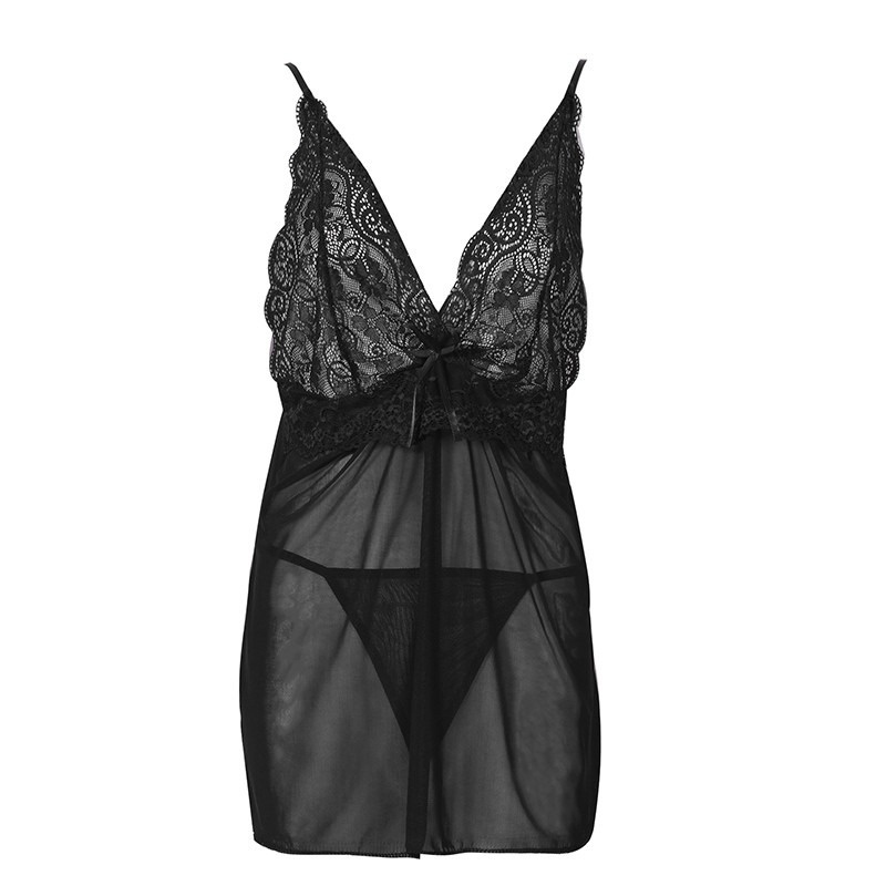 Women Fashion V-neck Crochet Lace Mesh Dress and Pantie Two Pieces Set Soft Homewear Halter Lace Nightgown Plus Size