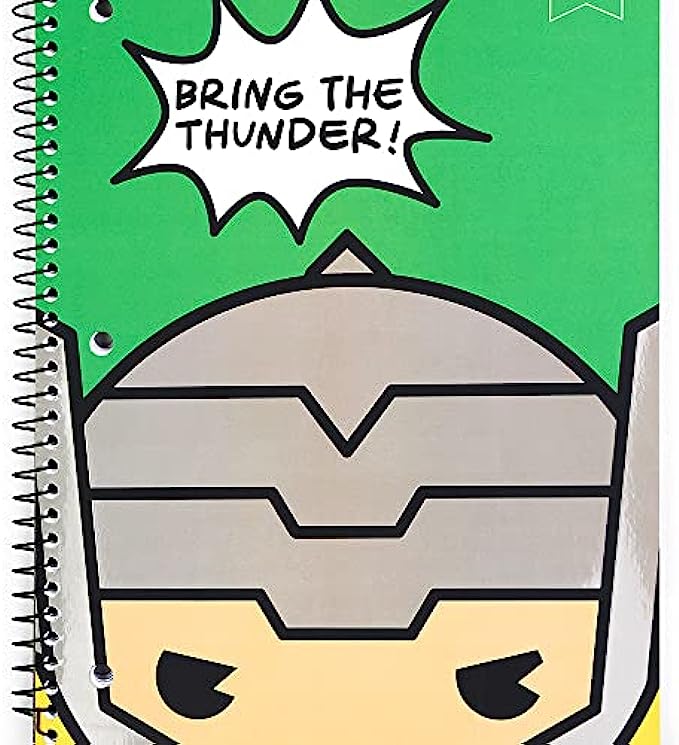 Super Hero Fans Will Go Crazy for These!: This notebook spiral will make every day special. Our 1 subject college ruled spiral notebook would be a wonderful gift for your child’s birthday or anyone young at heart. This Thor kawaii notebook is guaranteed to make them smile!